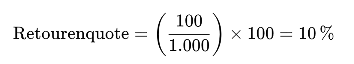 Angenommen, das Unternehmen hat in einem bestimmten Zeitraum insgesamt 1.000 Produkte verkauft und 100 Produkte zurückgesendet.